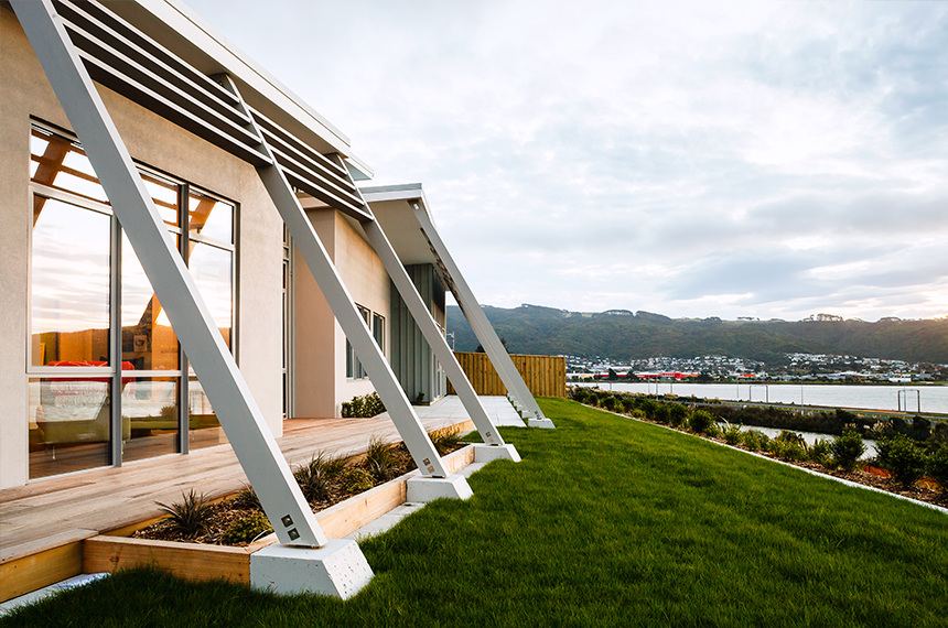 A near flat, sunny, north facing site with views over Te Awarua-o-Porirua Harbour provided a good starting point for this new home.